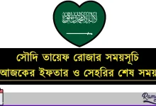 সৌদি বুরাইদাহ আভা খোবার রোজার সময় সূচি ২০২৬ | আজকের ইফতার ও সেহরির শেষ সময়…