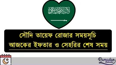 আপনি কি সৌদি আরবে অবস্থান করছেন এবং পবিত্র মাহে রমজানের রোজা, সিয়াম বা সাওম সেখানেই পালন করবেন? আমাদের প্রশ্নে আপনার উত্তর যদি হয় ‘হ্যাঁ’ সূচক। তবে এই আর্টিকেলটি বিশেষভাবে আপনার জন্যই লিখা হয়েছে, কারণ এখানে আমরা শেয়ার করব সৌদি আরব রমজানের সময়সূচি ২০২৬ ক্যালেন্ডারটি। এর ফলে আপনারা প্রতিদিনের রমজানের নির্দিষ্ট এবং নির্ভুল সময়সূচী জানতে পারবেন সৌদি আরবের সকল শহরের ইনশাআল্লাহ।
